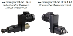 Gewicht: SK40 ca. 79 kg (inkl. Motor BG112/ 5,5 kW) / HSK-C63 ca. 52 kg (inkl. Motor BG90/ 1,5 kW)